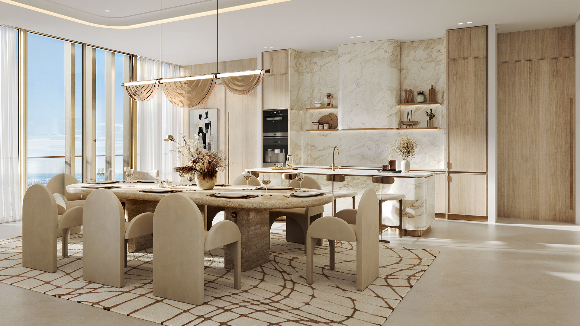 This luxurious complex features elegantly designed residences with 3 to 5-bedroom layouts, including spacious duplexes. Residents will enjoy stunning panoramic views of Dubai’s skyline through floor-to-ceiling windows and expansive terraces. The interiors are thoughtfully designed with high-end finishes, and the development offers a range of premium amenities. Prices start at AED 17.5 million (USD 4.7 million) for a 4-bedroom residence and AED 38 million (USD 10.3 million) for a 5-bedroom residence.