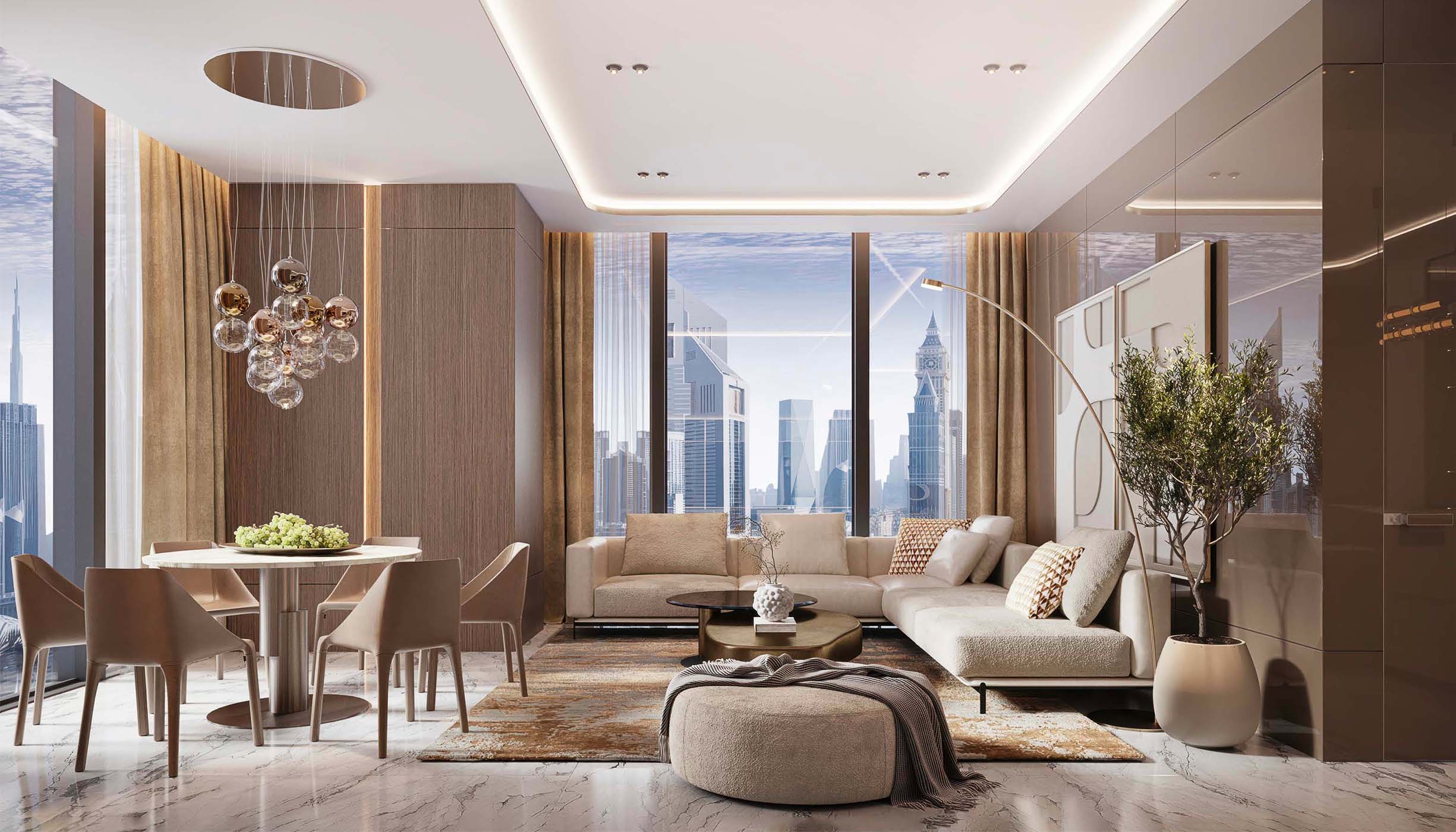 The tower will feature luxurious 1–3 bedroom apartments and penthouses, with prices starting at AED 8 million (USD 2 million) for a 1-bedroom unit. Buyers can benefit from a 50/50 payment plan.