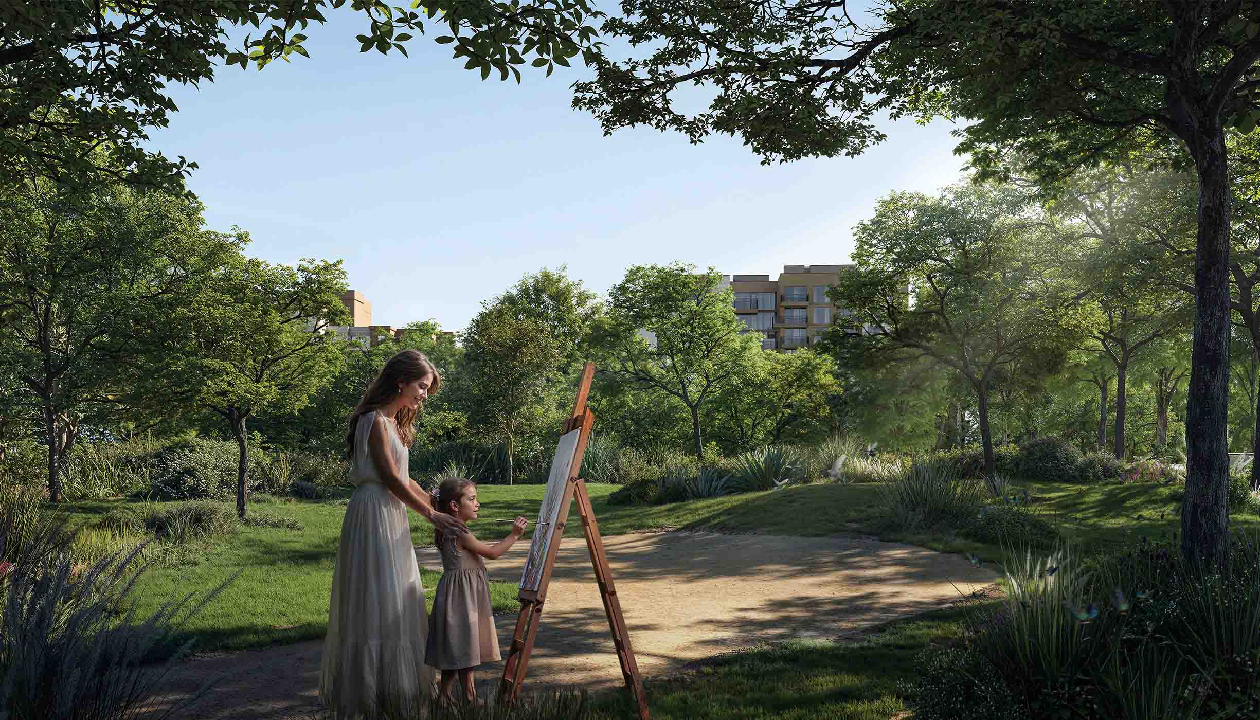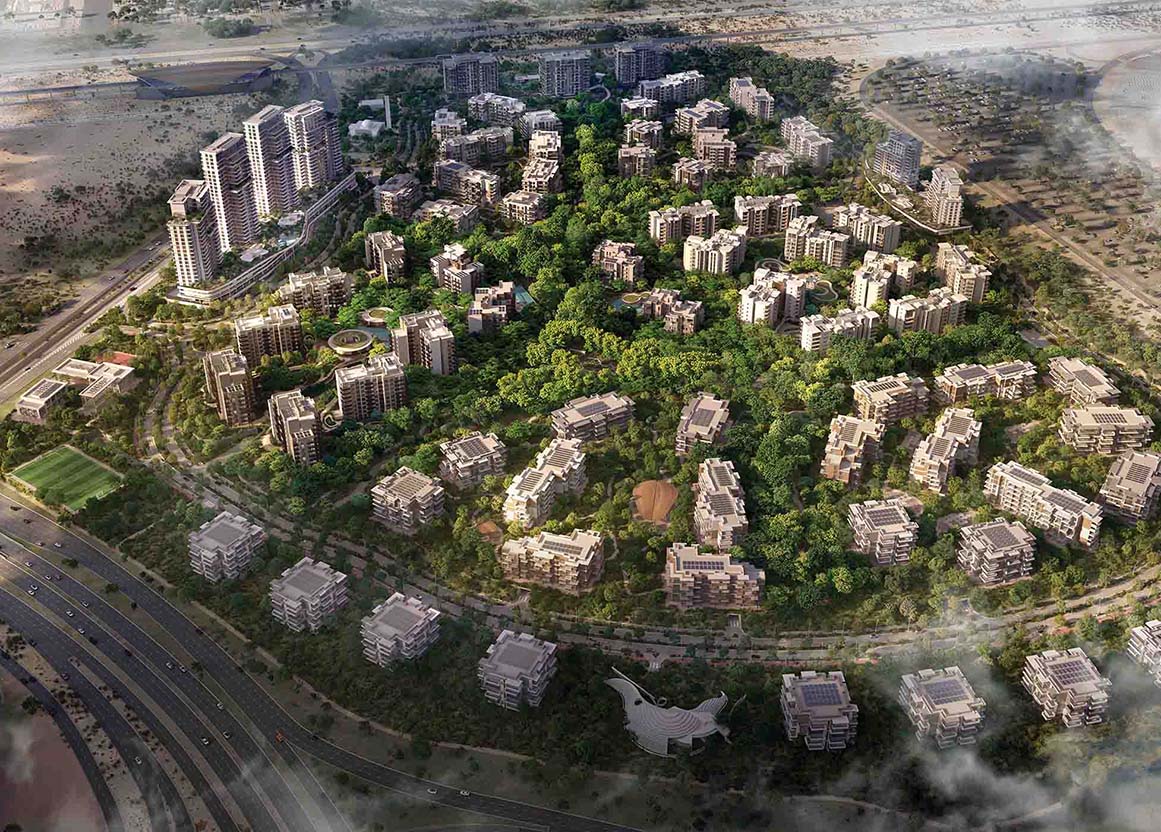 Ghaf Woods will feature 40,000 trees, creating a lush green environment with forest pools, walking trails, gardens, a school, a mountain bike training centre, and a wellness and yoga pavilion. The community is strategically positioned, allowing residents to reach Al Maktoum International Airport and Downtown Dubai in under 30 minutes by car.