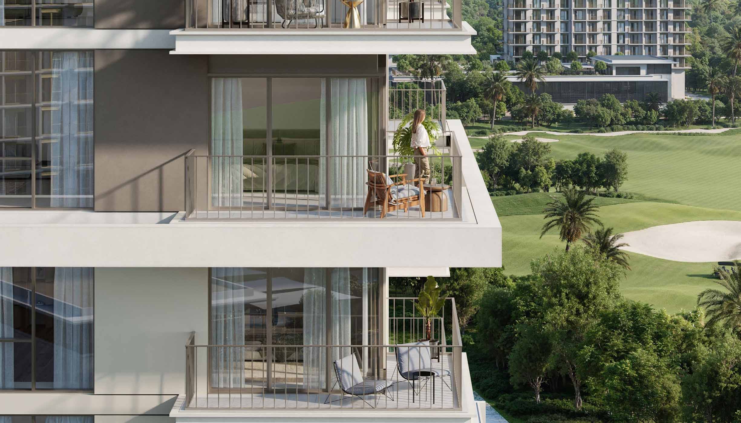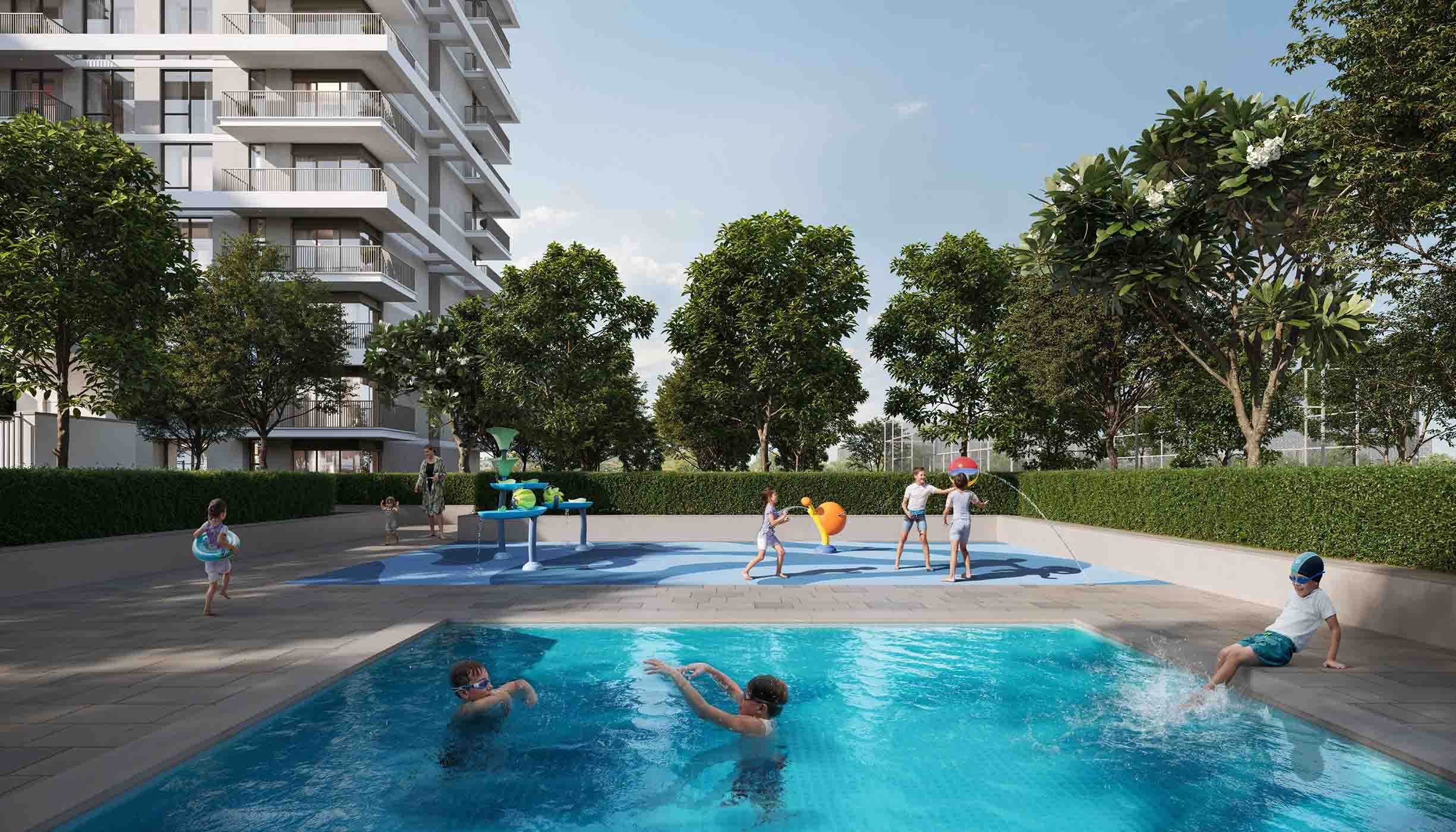 The community features a selection of 1 to 3-bedroom apartments and spacious 3-bedroom townhouses, each offering stunning views of landscaped gardens and rolling green hills. Prices for a 1-bedroom apartment start at AED 1.12 million (USD 305K), with an attractive 80/20 payment plan available.