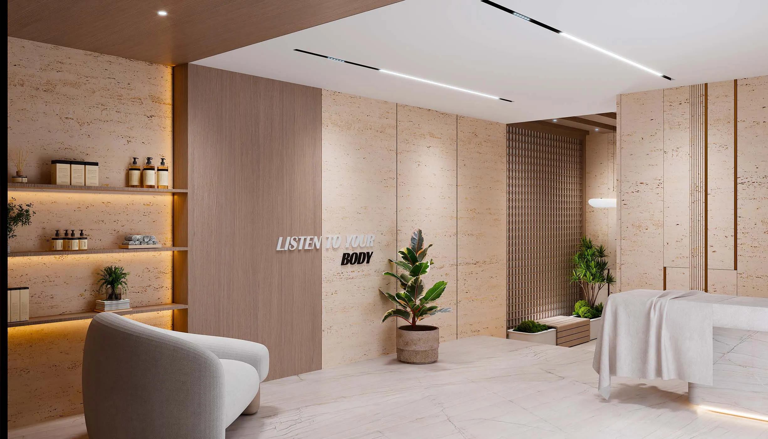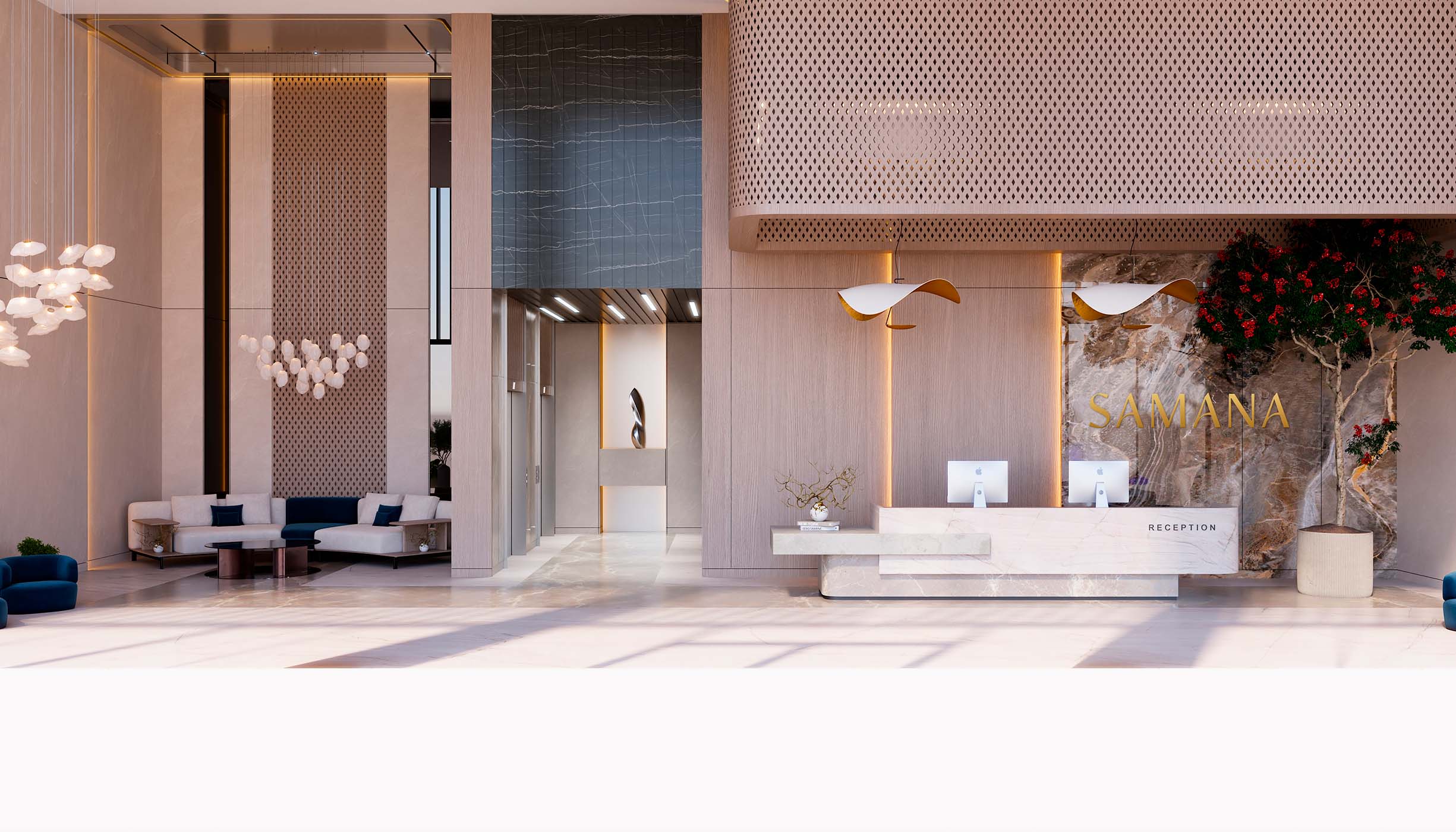 SAMANA Resorts boasts a variety of amenities, including lush green spaces, recreational facilities, a spa, yoga areas, and sports grounds. A modern fitness center with state-of-the-art equipment and personal training spaces further enhances the appeal of this development.