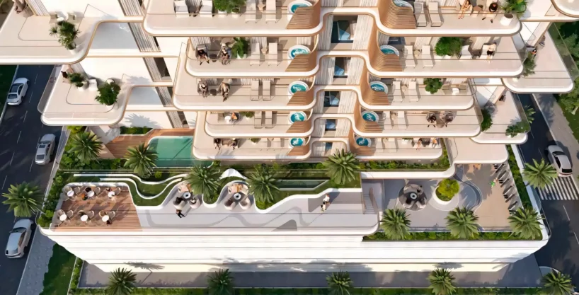 The project features premium fully furnished units, including 1–2 bedroom apartments and 3-bedroom duplex penthouses, all thoughtfully designed with spacious terraces and balconies. Prices start at AED 1.7M (USD 463K), with a flexible 60/40 payment plan.