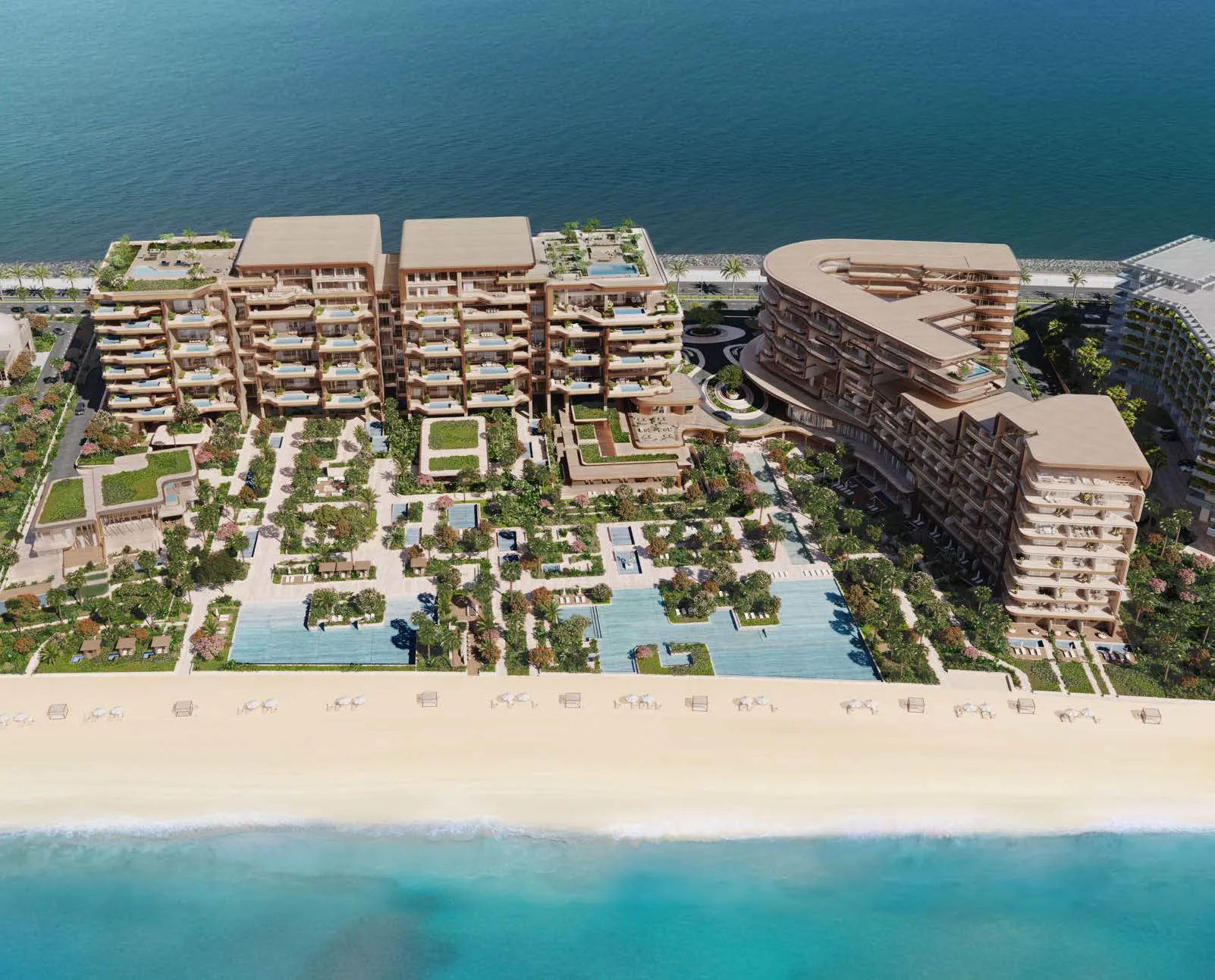The Alba is a highly anticipated luxury development located on the iconic Palm Jumeirah, Dubai. Developed by OMNIYAT, a leading name in the ultra-luxury real estate market, this project showcases architecture by the world-renowned Zaha Hadid Architects. The beachfront residences feature furnished 2-3 bedroom apartments, meticulously designed by the acclaimed design studio YODEZEEN, and are managed by the prestigious Dorchester Collection.